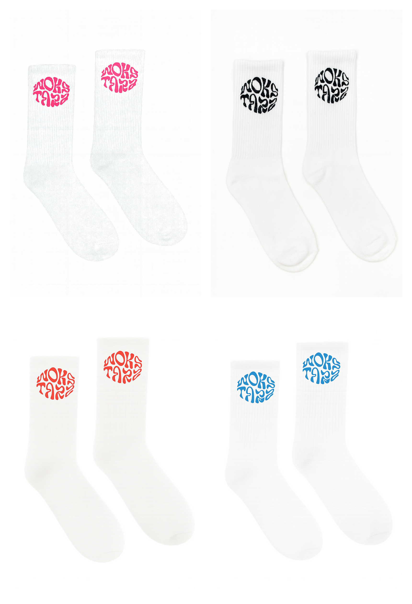 Level up your sock game with the Wokstarz Logo Socks bundle — now at a special discounted price! This 4-pack includes our signature logo in four bold colors (pink, black, red, and blue), giving you fresh options for any fit. Made with a soft, breathable cotton blend and a ribbed crew design for all-day comfort, these socks are perfect for streetwear, workouts, or everyday wear.